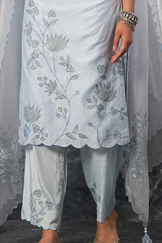 The exquisite applique embroidery and soft, breathable fabrics on this Indian ethnic wear make for a classy outfit that feels incredibly comfortable and looks effortlessly chic.