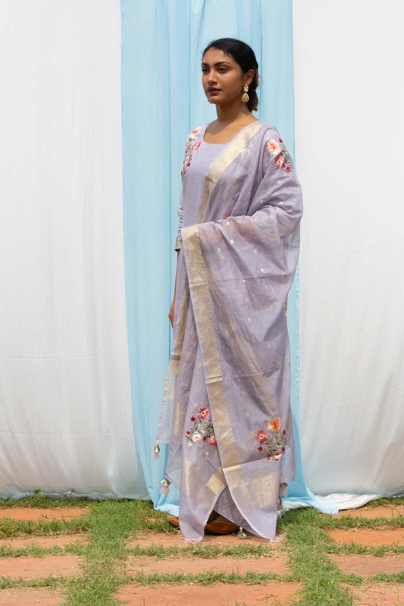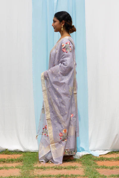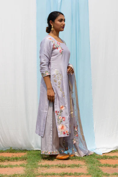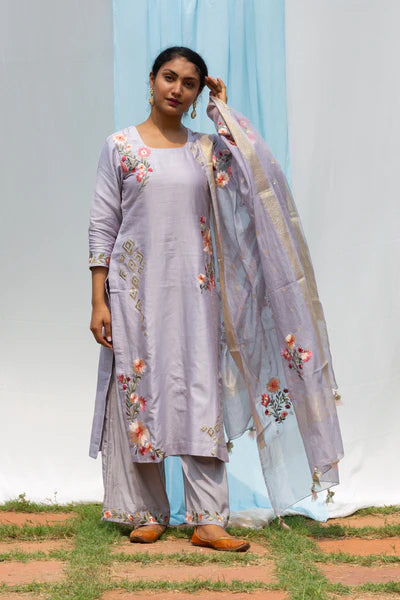 Parineeta is a showstopper. Crafted with detailed embroidery, resham, and leatherette, this suit set exudes elegance. The graceful tassels on the dupatta complete the look, adding a touch of subtle luxury. For the person who values artistry in their wardrobe, Parineeta is the perfect choice.